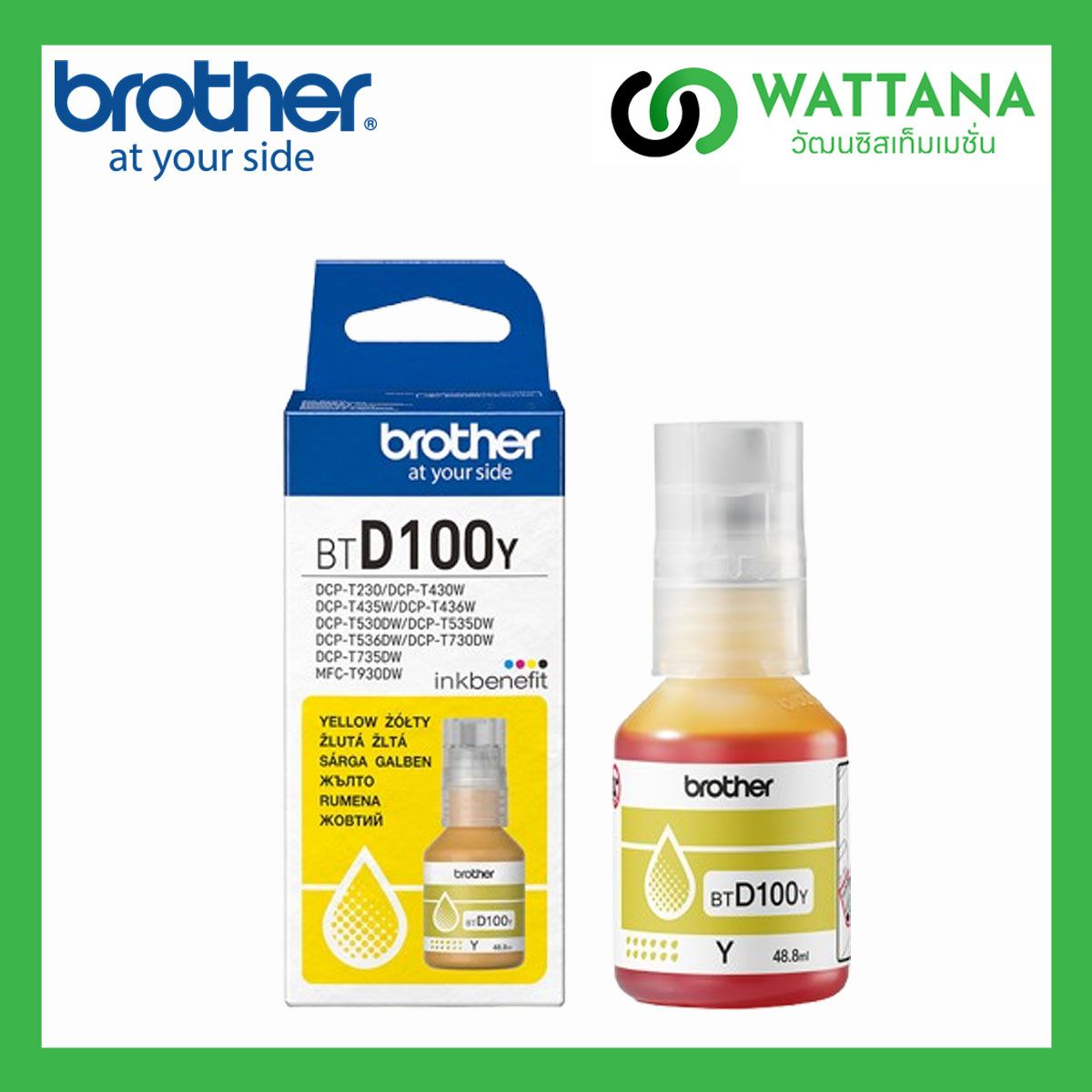 NEW!! หมึกเติม (Refill) Brother BT-D100Y (Yellow) สีเหลือง ของแท้