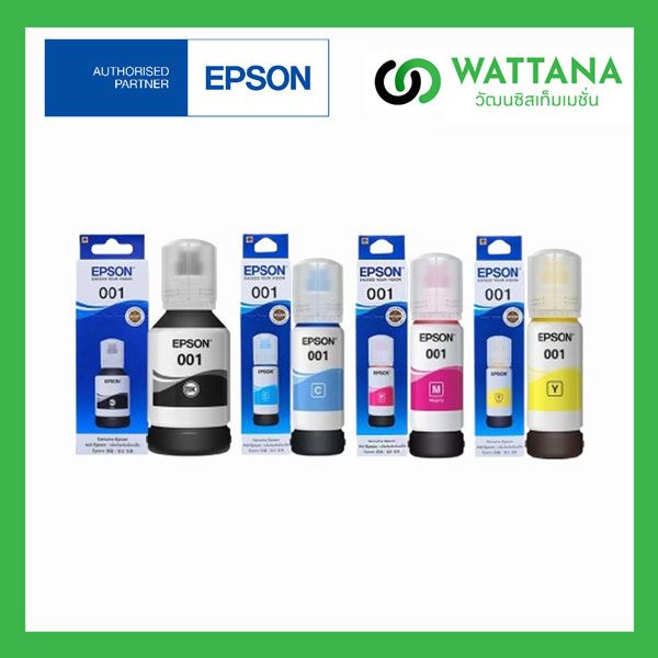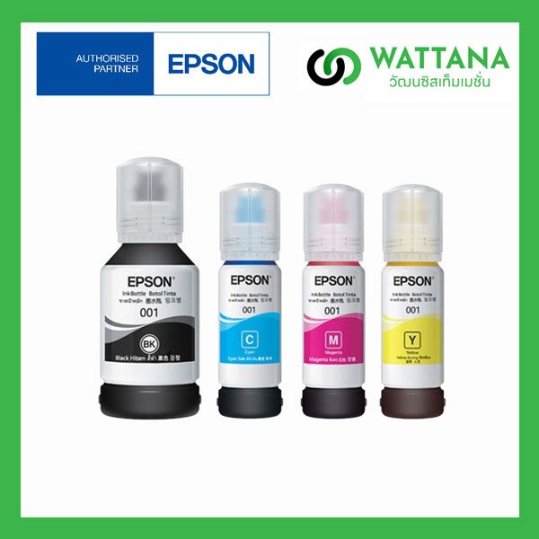 หมึกเติม Epson 001 Set 4 ขวด Black/Cyan/Magenta/Yellow ของแท้ 100% 65ml.